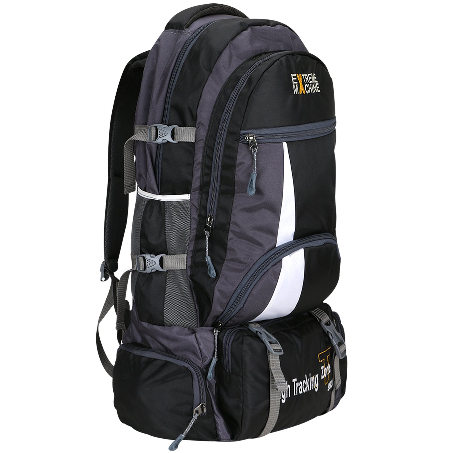 Crafted from high-quality, heavy-duty, water-resistant fabric, this trekking bag is built to handle tough outdoor conditions. It comes with a large main compartment and multiple zippered pockets for organized storage and quick access to important items.